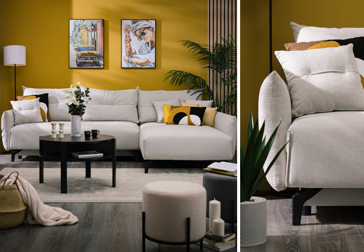 Dizajneri enterijera Forma Ideale kao detalje koji se uz nju savršeno uklapaju predlažu tepih KARO, podna lampa SANDRA, dekorativne jastuke, zidnu sliku, mali natur stočić sa strane, kao i pažljivo odabrane sitnice poput knjiga i veštačkog cveća. Ovaj kutak odiše toplinom i spokojem i idealno je mesto da se opustite i uživate u trenutku za sebe.
