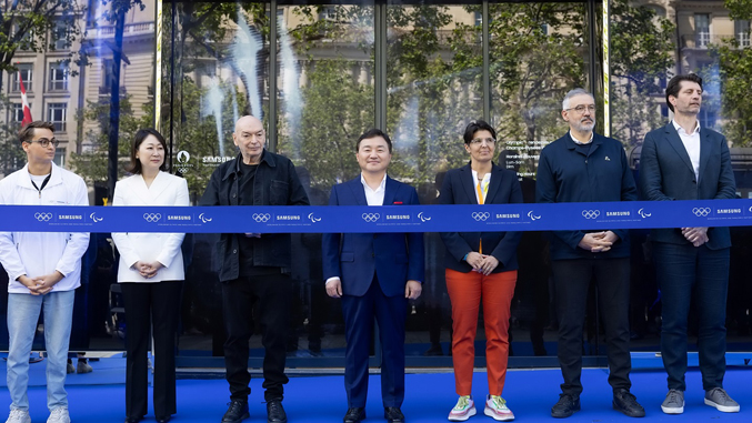 Olympic™️ rendezvous @ Samsung | Champs-Elysees 125 je svečano otvoren ceremonijom presecanja vrpce kom su prisustvovali Ti Em Rou, ambasadori Samsung Galaxy tima među kojima su bili francuska surferka Žoan Defej, britanski brejkdenser Karam Sing i francuski paraplivač Ugo Didije, kao i An-Sofi Vumar, direktorka MOK-a za televizijske i marketinške usluge, Pjer Rabadan, pomoćnik gradonačelnika zadužen za sport, Olimpijske i Paraolimpijske igre za Grad Pariz, i Etjen Toboa, generalni direktor Organizacionog komiteta Olimpijskih i Paraolimpijskih igara u Parizu 2024.