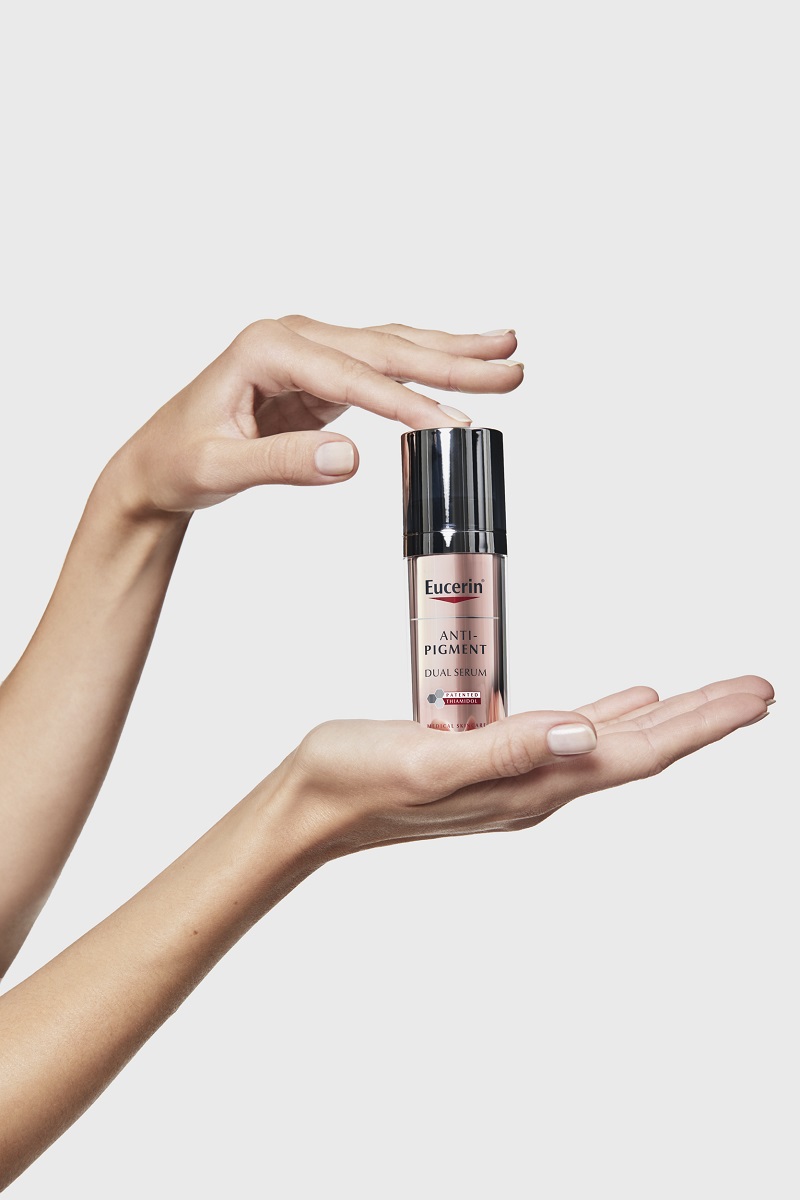 Da biste ispravili nepravilnosti, ali i sprečili nastanak novih fleka tu je Eucerin® Anti-Pigment Serum. Njegova posebnost je što kombinuje Thiamidol® koji je efikasni, patentirani sastojak Eucerin® brenda i koji dokazano smanjuje hiperpigmentacije i redovnom upotrebom sprečava njihov ponovni nastanak, i hijaluronsku kiselinu, jednu od najefikasnijih hidrirajućih supstanci koja pomaže koži da veže vodu i zadrži vlažnost. Hijuronska kiselina se inače prirodno nalazi u našoj koži, godinama opada, a ima sposobnost da veže količinu vode koja između 1.000 i 10.000 puta veću od njene težine, zato je važna za jedar izgled i glatku kožu.